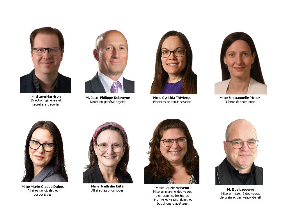 Au secrétariat général des Producteurs de bovins du Québec, une trentaine d’employés soutiennent les élus dans les activités quotidiennes de mise en marché et de développement. Les employés supportent également les élus dans le suivi des dossiers ainsi que dans l’administration générale des PBQ.