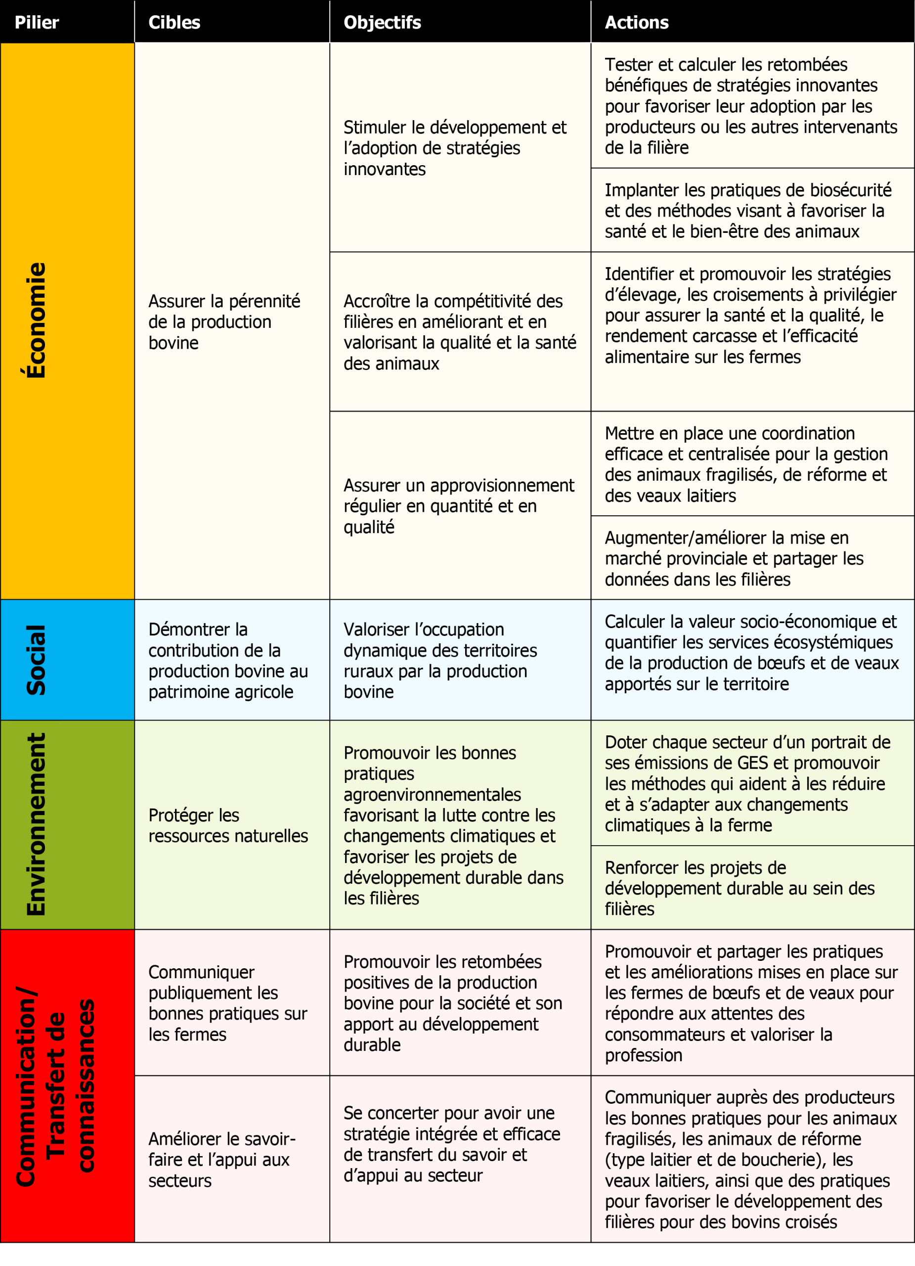 Le comité exerce ses fonctions en respectant la Stratégie de durabilité des Producteurs de bovins du Québec 2025-2035, adoptée par les PBQ le 11 décembre 2024, et en cohérence avec les planifications stratégiques des filières bœuf et veau ainsi que la politique bioalimentaire 20252035 du MAPAQ.